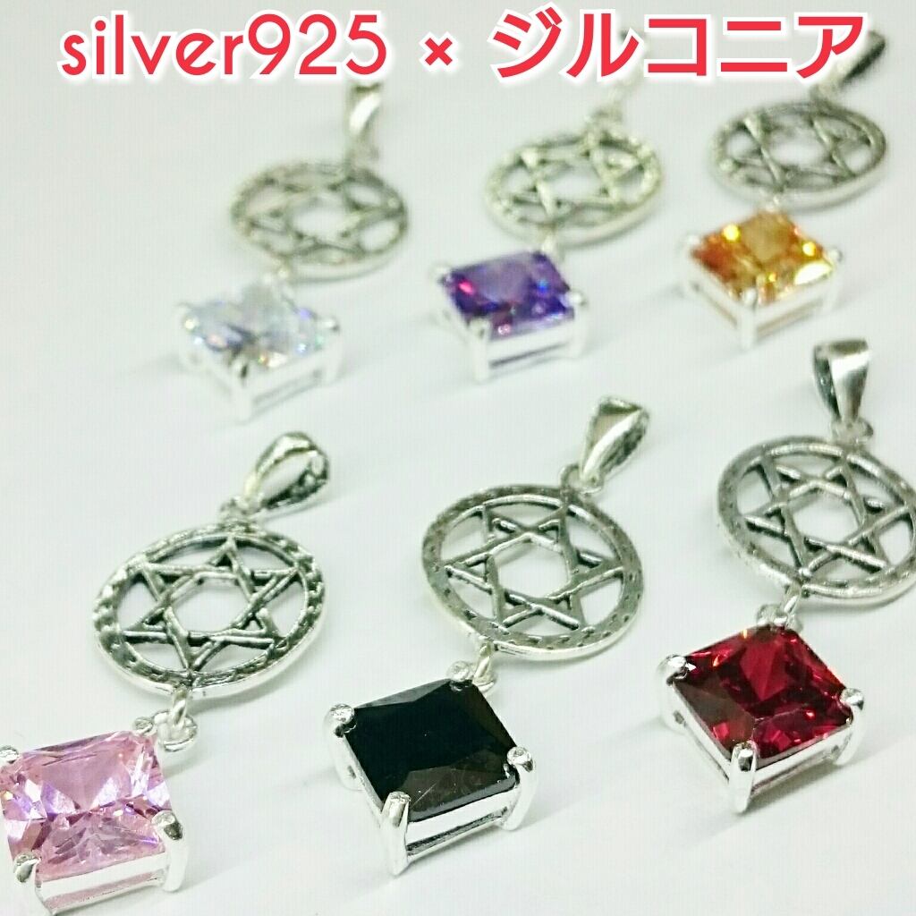 六芒星プレート&ジルコニア ペンダントトップ ピンク/正方形 スクエア シルバー925